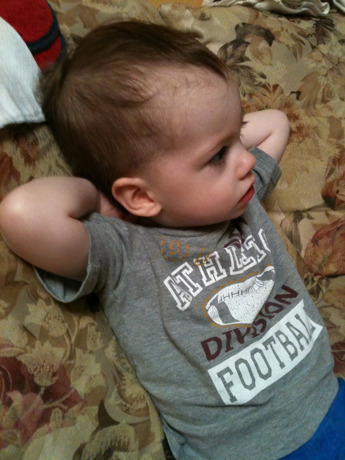 September: Sophie is speaking more and doing well at MDO. However, she still needs more help. We are researching Pediatric Developmental Doctors and try to get her enrolled into GISD for speech classes. This develops into a HUGE ordeal with more paperwork than I ever imagined could exist. Ben turns 32. I actually get crafty and MAKE something for his birthday. Pinterest Addiction has actually paid off! Milly pulls up and begins cruising around the furniture. Holy Moly, three mobile kids are a lot of work!