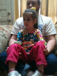I left with Sophie first because I don't have a card to get into the pool and I hoped that a Good Samaritan would let us in and then I would tell Ben to go get the rest of the crew. My grandparents had gone home because of the heat. We got in and Ben went back for the rest. Sophie and I started swimming around.