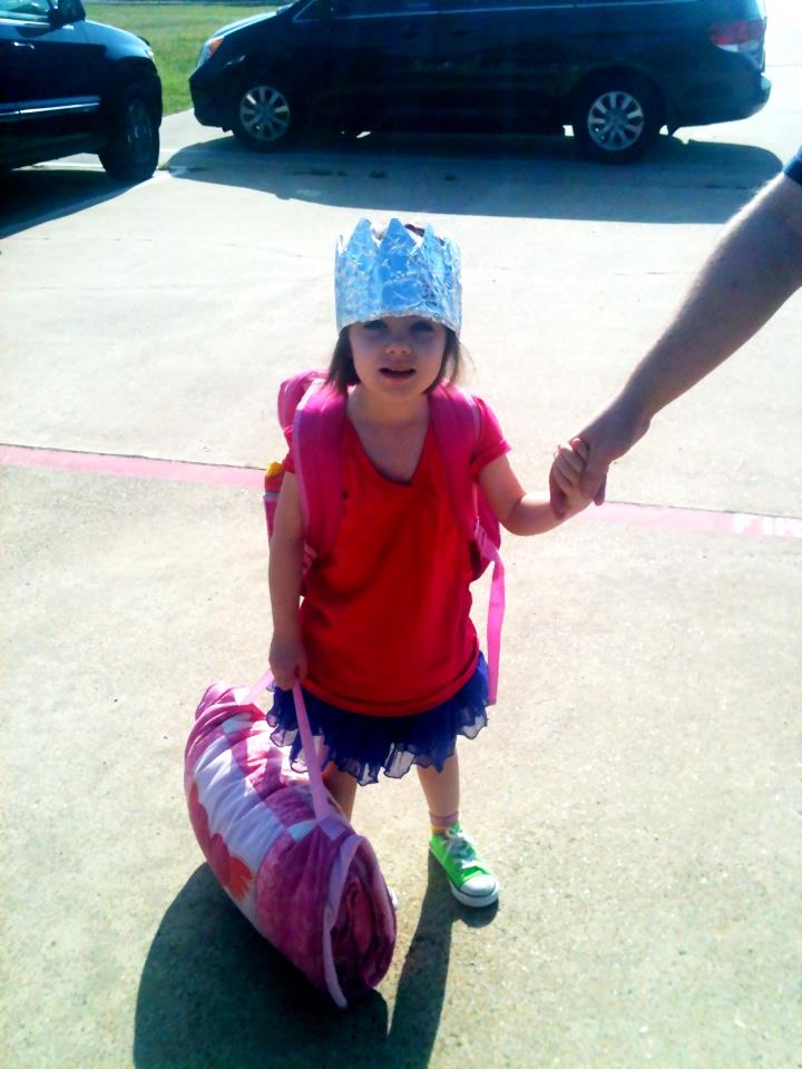 Today was Royalty Day at Mother's Day Out. I sat down last night and tried desperately to make Sophie a shiny crown to wear. She actually showed a lot of enthusiasm at my ham-handed attempt at craftiness and wore it to school today.