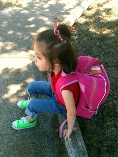 Sophie has been going to the regular Pre-K room for 20 minutes each day for 4 days a week. She participates in their Circle Time. After 2 weeks, I spoke to her teacher who said that Sophie was quiet and a little afraid of the Pre-K teacher. She stayed close to her aide and wouldn't look at the teacher or talk to her. This broke my heart because it sounded so familiar. I can remember being terrified of a teacher each year in school until high school. It was never my homeroom teacher but was always one I didn't see all of the time. I discussed this with Sophie's teacher who said that she would talk to the Pre-K teacher to see if there was anything they could do. After a week she said that Sophie would talk and smile at the teacher. Now she eagerly goes to her other classroom and will interact with the kids and the teacher. I'm so proud of her for conquering her fears.